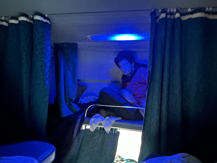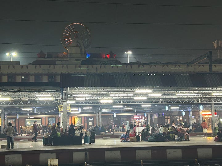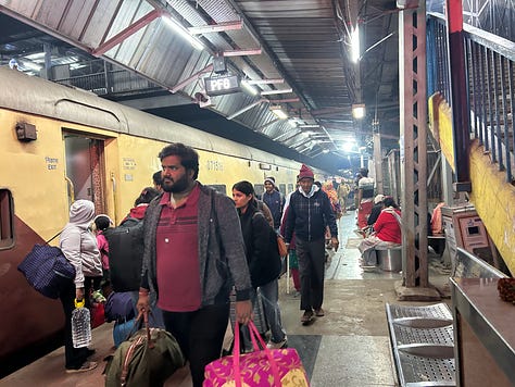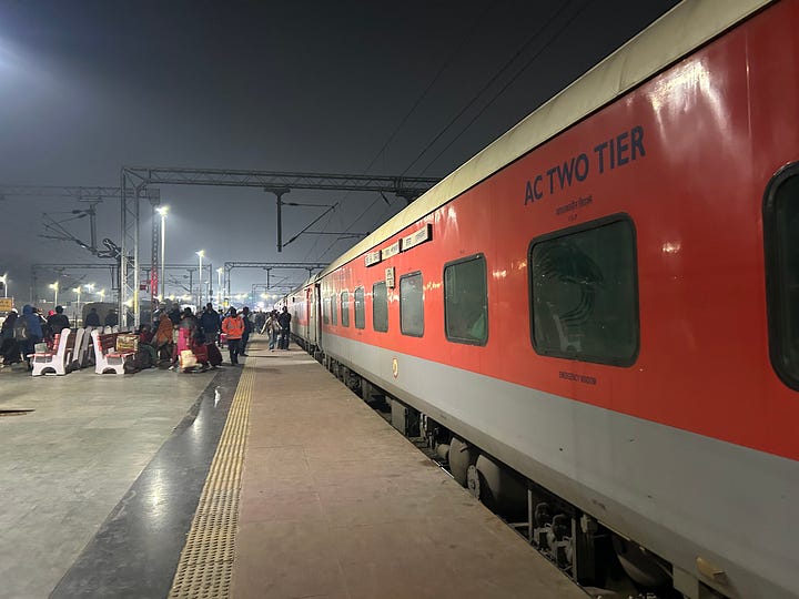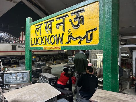 From Varanasi we catch the midnight train to Lucknow. The second-class sleeping car is crowded but clean and comfortable, and the train is perfectly punctual.