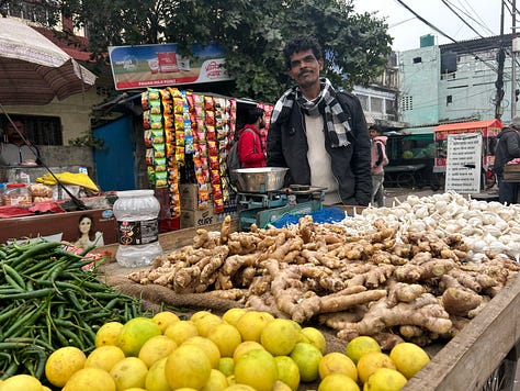 At the gates of the park, we met a Buddhist family from Darjeeling. Tibetans. In early 1959, the 22 year old - who is now the 90 year old head of the family – told me how he escaped after China’s brutal response to popular protests, along with 80,000 or so others - the Dalai Lama among them -across the Himalayas into India. Several thousand died on that arduous journey into exile. The family is here on a pilgrimage. We bump into them again later, eating momos, little Tibetan dumplings, in a restaurant the other side of the park.