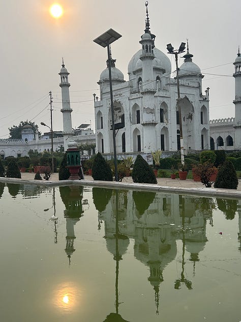 Lucknow is a very different city to Varanasi, with only a tributary of the Ganges, the Gomti, but no less interesting. Here too, children fly homemade kites all day along the river, and from every scrap of open land or flat rooftop. The trees are dotted with a red and purple mosaic of lost kites.